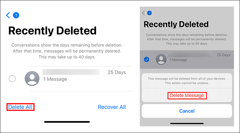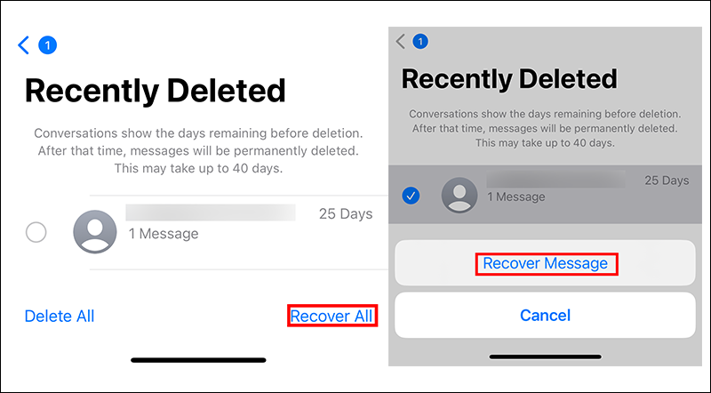 尖端:到在 iPhone 上撤消已删除的消息,只需点击“全部恢复”。