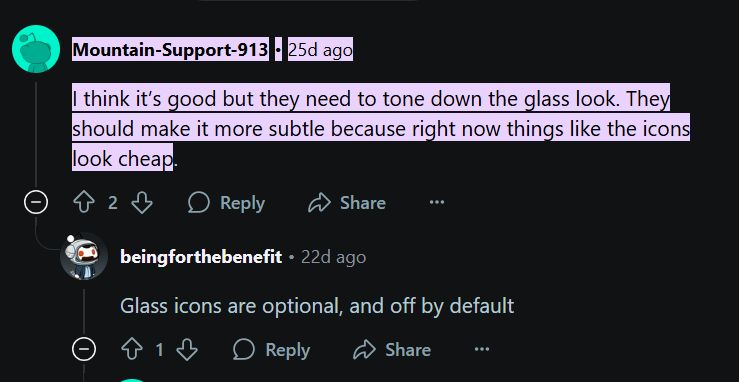 一位用户表示,液态玻璃设计虽然很漂亮,但感觉给 GPU 带来了很大的压力。
