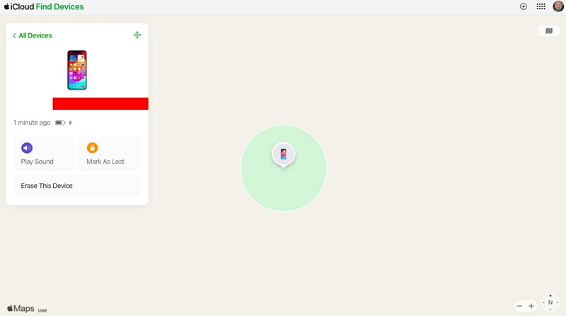 第4步:选择您锁定的 iPhone,然后单击“抹掉此设备”。完成此步骤后,您的 iPhone 将重置为出厂设置。