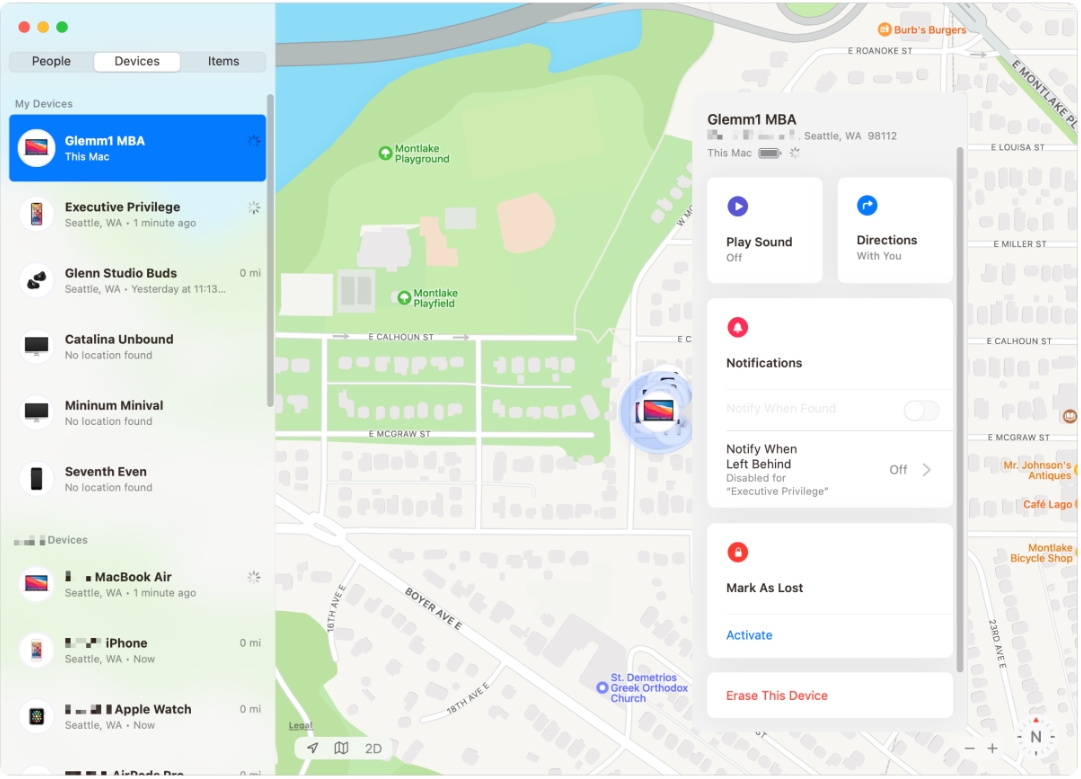 步骤一:打开 Apple 设备上的“查找我的”应用程序。我们将使用 Mac 作为示例。