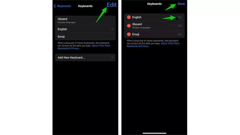 使用第三方键盘有时会导致冲突,导致您的 iPhone 卡在搜索屏幕上。切换回 Apple 的默认键盘可能会解决该问题。
