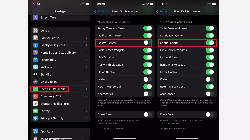 在锁定屏幕上启用控制中心,您可以通过滑动访问控制中心