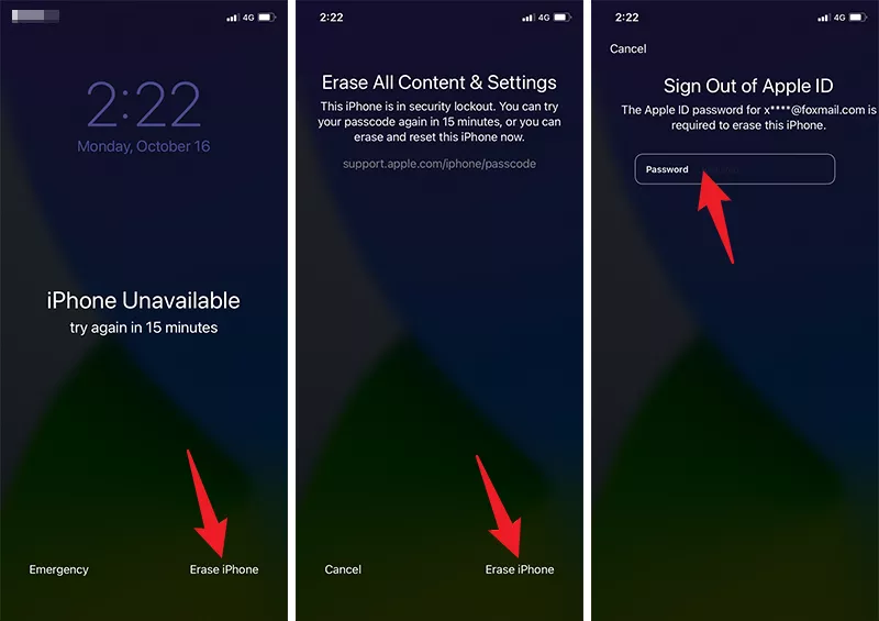 iPhone 配备了擦除选项,可让您快速绕过“iPhone 不可用,请在 15 分钟内重试”的锁定消息,并重新获得访问权限。