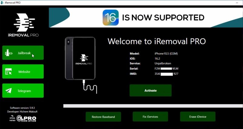 标准版本简称为 iRemoval Pro,首先对您的设备进行越狱,然后使用 checkm8 漏洞来突破系统分区。一旦完成,它就会使用一种既不新颖也不独特的方法绕过激活锁。因此,虽然它可能会让您跳过“Hello”屏幕,但不要指望它会永远持续下去。
