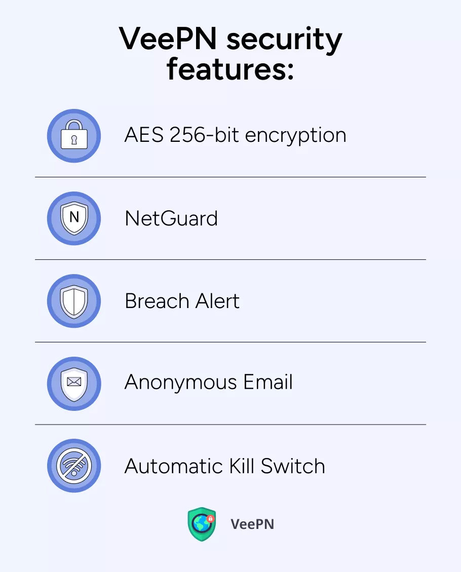 借助Veepn,您可以显着提高在线安全性并充满信心地使用eBay,因为我们的应用程序提供了一系列强大的安全功能: