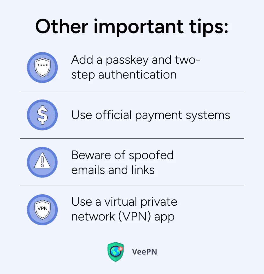 - 提防欺骗的电子邮件和链接。注意电子邮件地址和链接。它们看起来像是合法的,但在一个符号中有所不同,这意味着您会看到一个欺骗的电子邮件/链接,该电子邮件/链接将泄露您的个人信息或在设备上安装恶意软件。