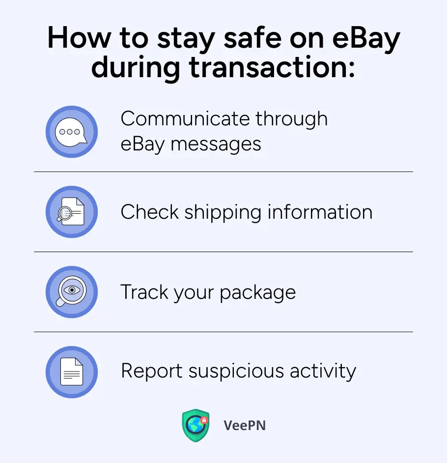 - 通过eBay消息通信。使用eBay的消息传递系统与卖方进行通信。避免共享诸如电话号码或电子邮件地址之类的个人信息,并且在eBay外不要进行通信。