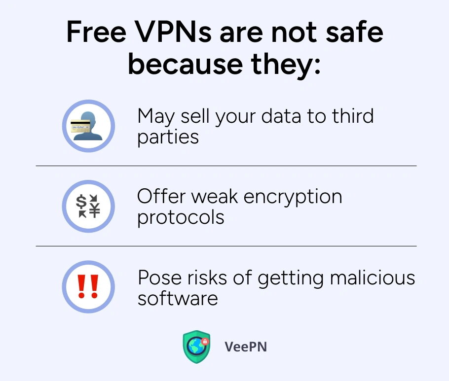 您可能会认为免费VPN是解决这些问题的好选择。但是,并非所有VPN都是相同的。通常,免费选项: