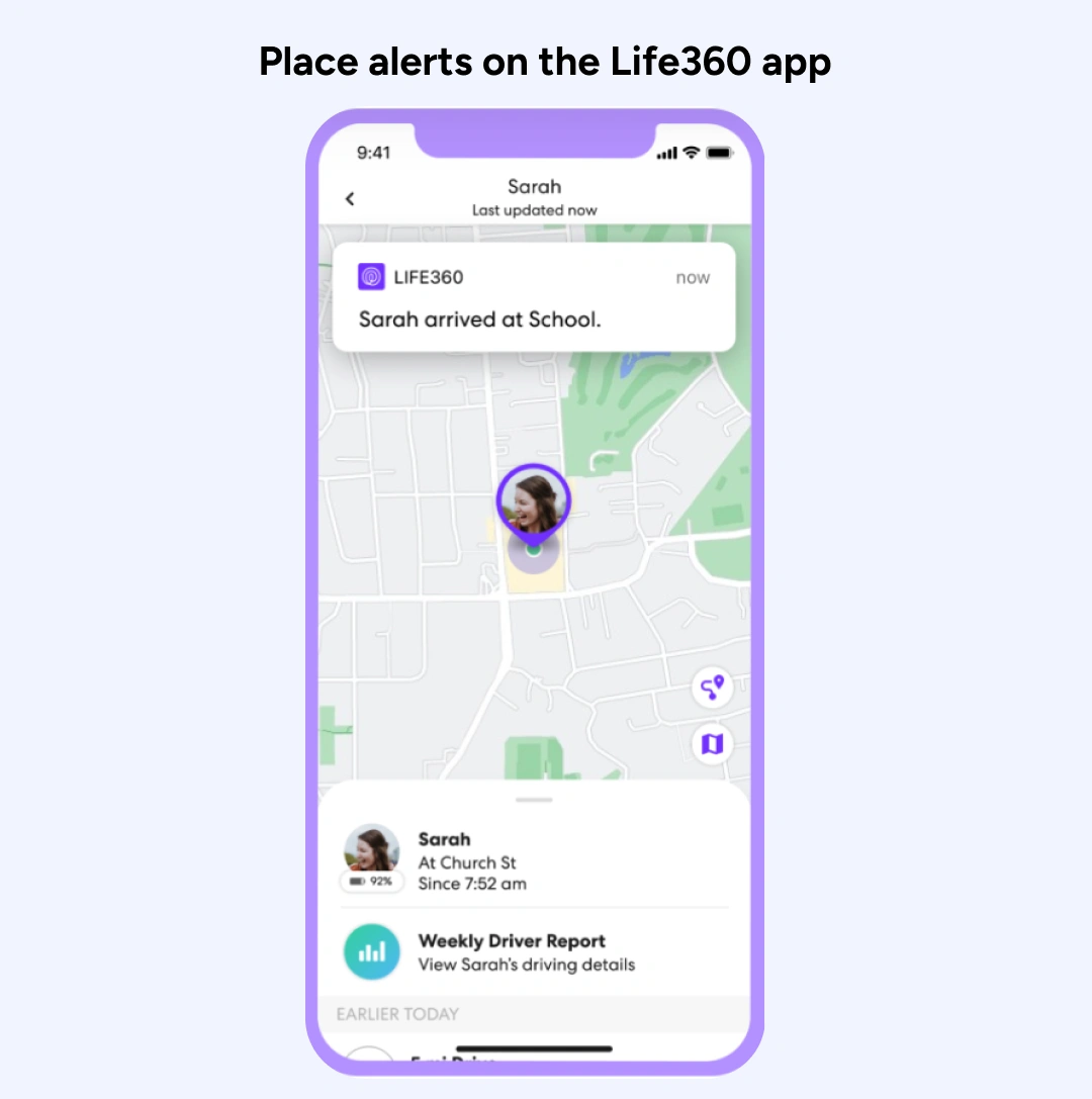 该应用程序允许设置“家庭”,“学校”或“健身房”之类的常见位置。每当家庭成员到达或离开这些位置时,用户都会收到通知。