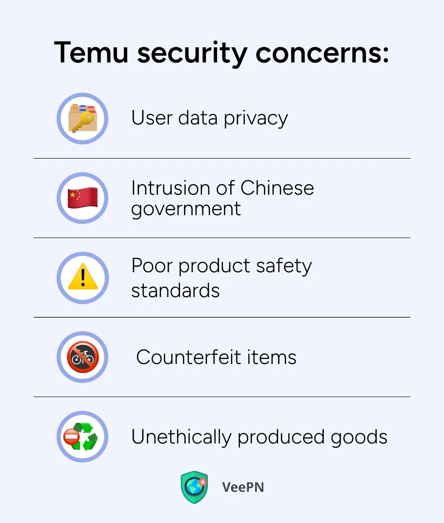 ⚠️中国政府的入侵。美国立法者对 Temu 收集的数据可能被滥用表示担忧,特别是考虑到其与中国的联系。虽然没有具体证据表明数据与中国共产党共享,但这是您应该注意的使用 Temu 的风险之一。