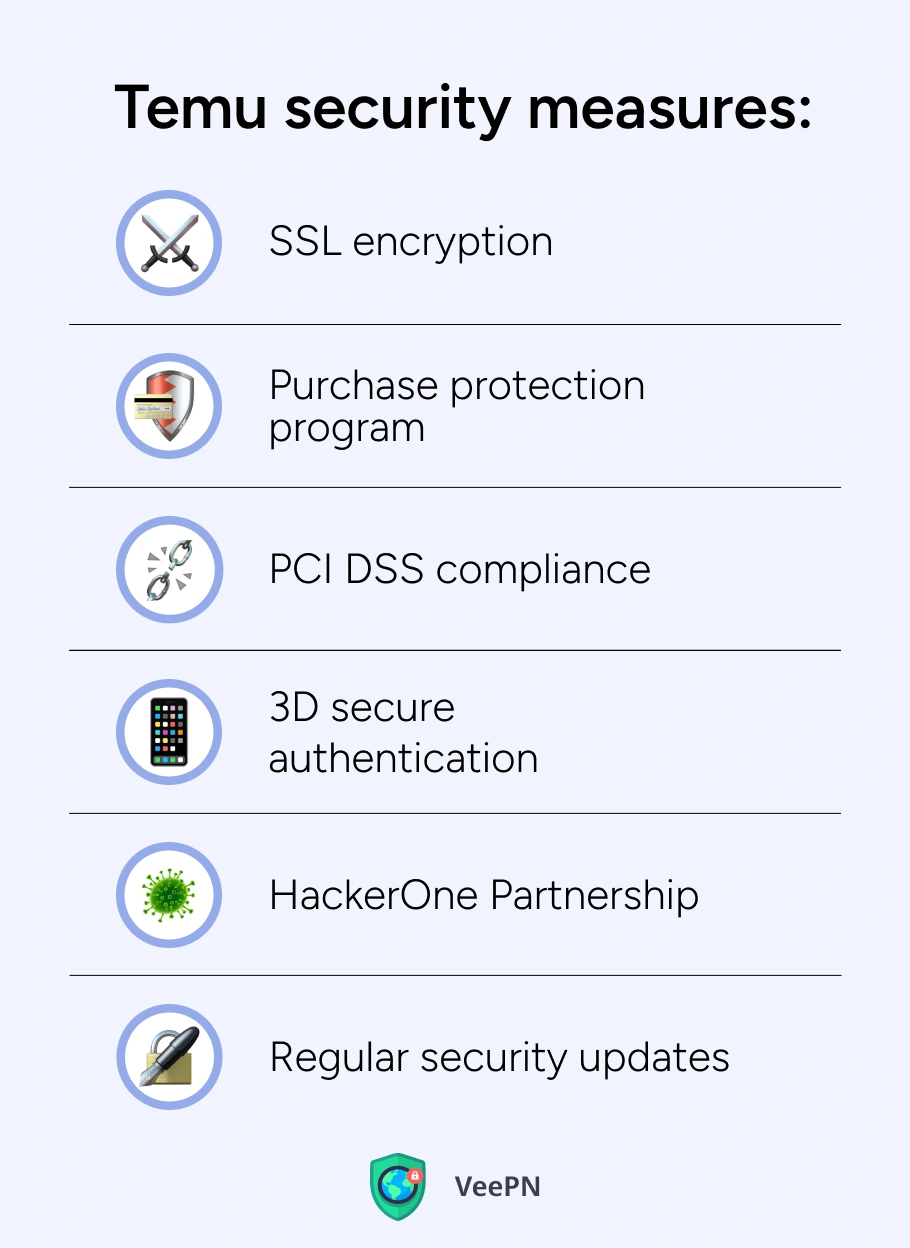 尽管我们已经说过 Temu 并不真正安全,但该数字市场使用多种安全措施来保护数据: