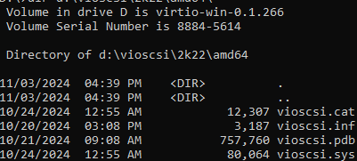 drvload d:\vioscsi\2k25\amd64\vioscsi.inf