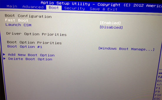 创建 PCUnlocker Live CD 后,将其放入锁定的华硕 Zenbook 笔记本电脑的 CD 驱动器中。打开机器电源并反复按F2键进入 BIOS 设置。前往安全选项卡并禁用安全启动控制选项。导航至开机选项卡,禁用快速启动并启用启动CSM。按F10保存并退出。