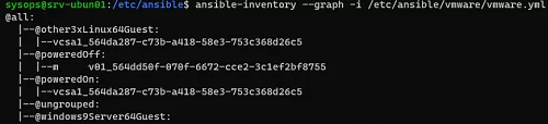 $ ansible-inventory --graph -i /etc/ansible/vmware/vmware.yml