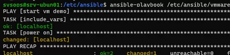 $ ansible-playbook /etc/ansible/vmware/vm_start.yml