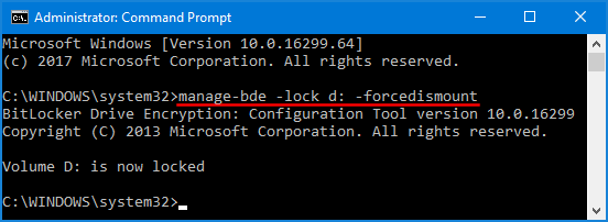 如果您想手动锁定 BitLocker 驱动器,则必须通过命令提示符执行此操作: