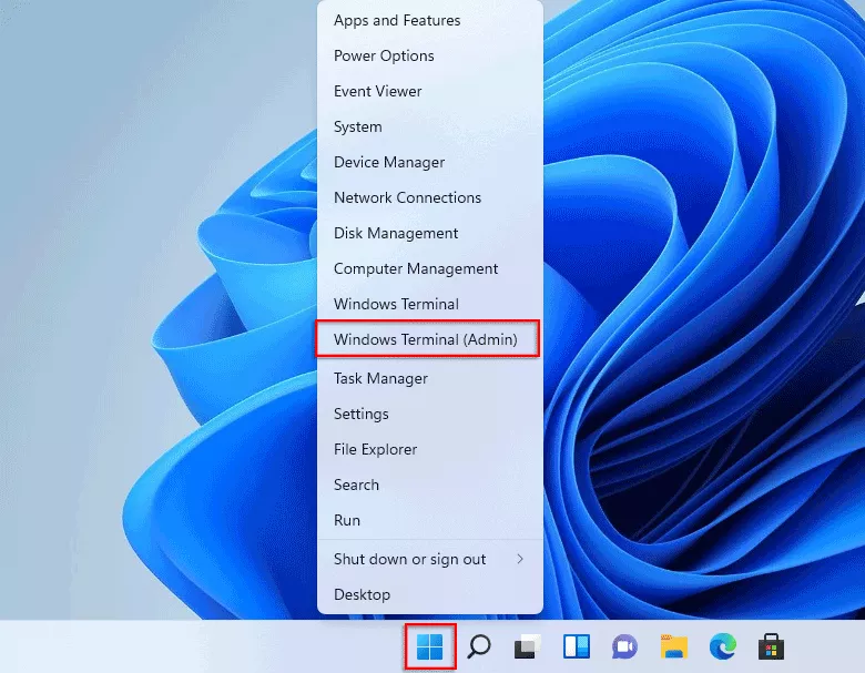 步骤一:右键单击赢图标并选择Windows 终端(管理员)。