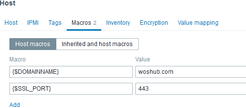 在宏选项卡中,添加两个参数:服务器名称和要检查 SSL 证书的端口: