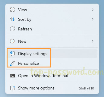 右键单击桌面上的任何空白区域,然后选择“显示设置“ 或者 ”个性化” 从上下文菜单中。