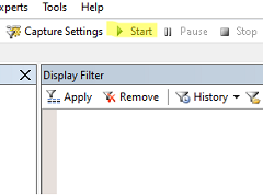 您现在已准备好开始捕获网络流量。单击开始工具栏上的按钮。