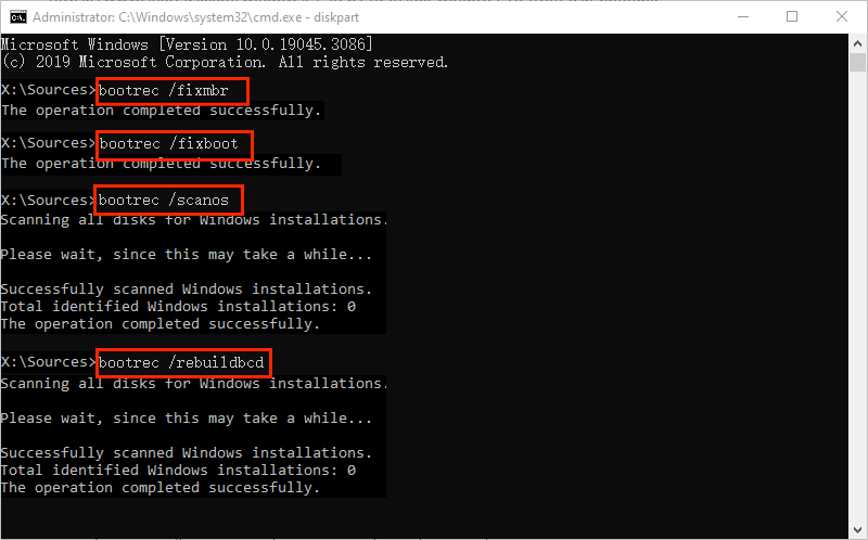 bootrec/rebuildbcd