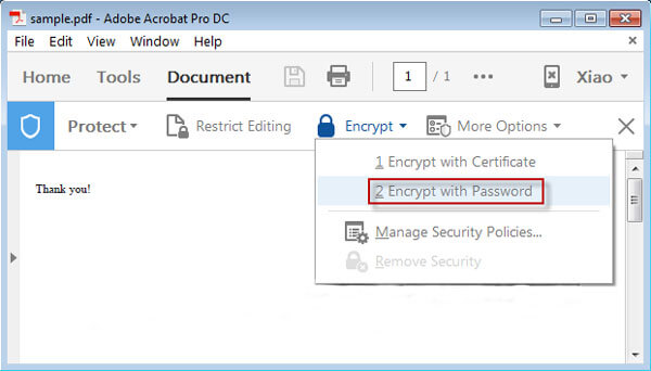 要使用密码保护 PDF 文档,您需要使用 Adobe Acrobat 等 PDF 编辑软件。