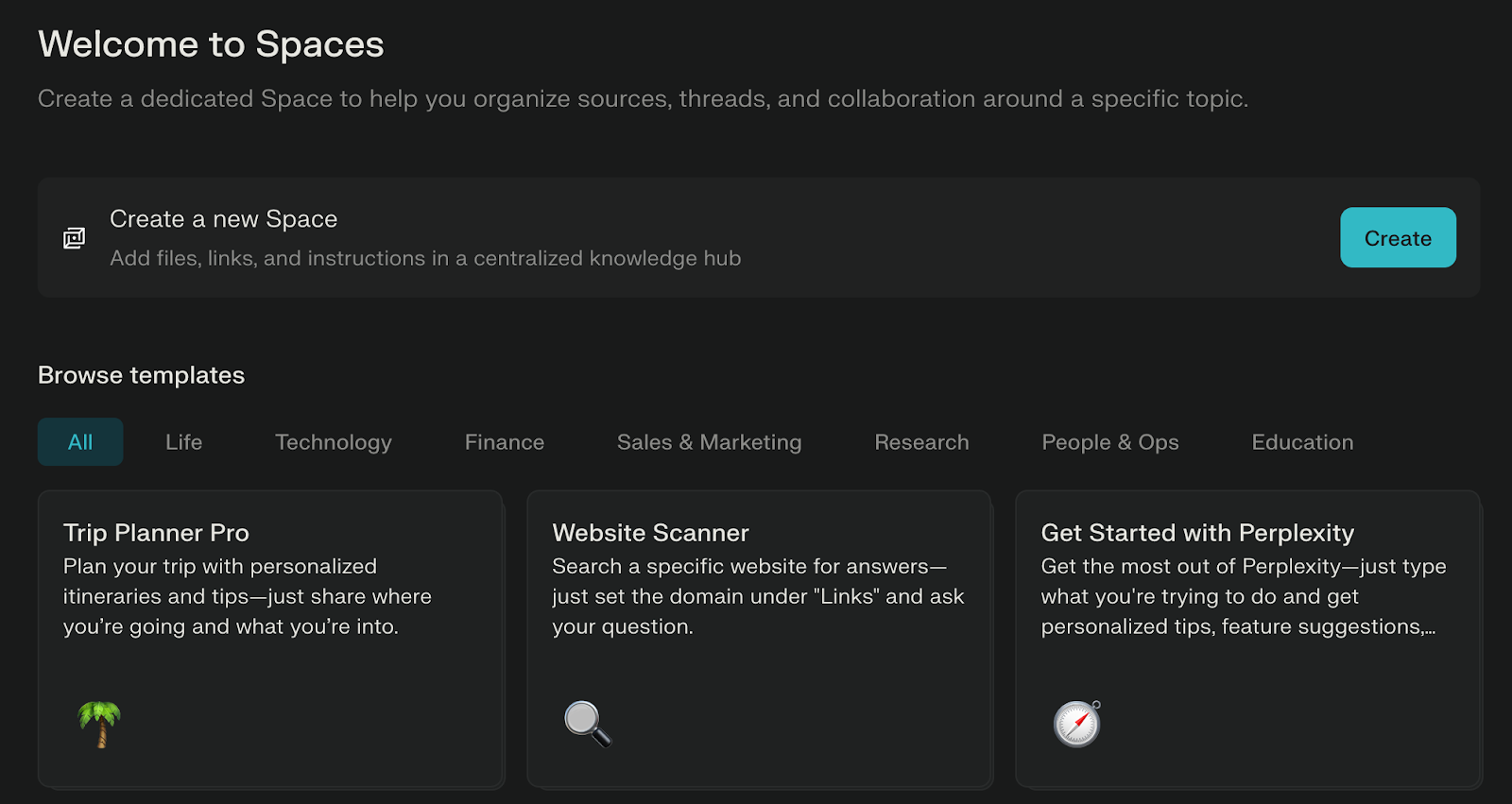 为不同的项目创建专门的研究空间。每个空间都维护自己的上下文和对话历史记录,使您的工作井井有条,而不会在项目之间交叉污染。