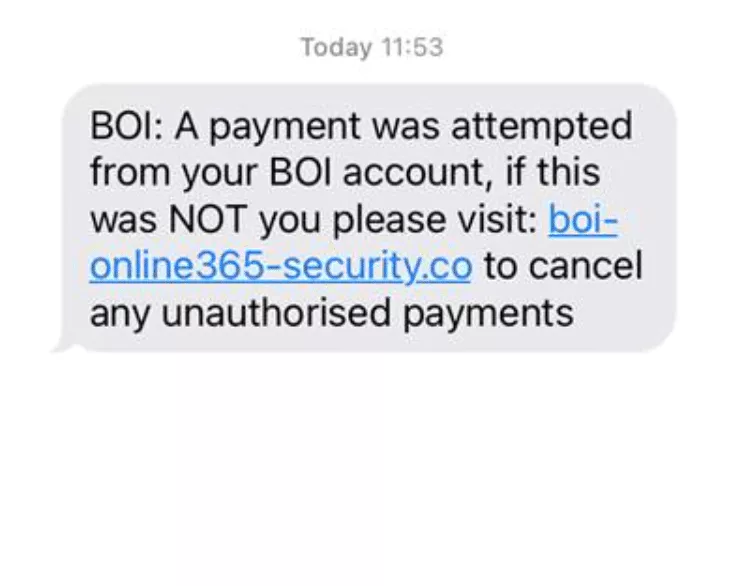 - “已尝试从您的银行帐户付款。”这条短信想让收件人感到害怕或困惑。它声称有人正在使用该人的帐户进行购买。忽略所提供的链接并致电 BOI 官方支持是检测此类骗局的最佳方法。