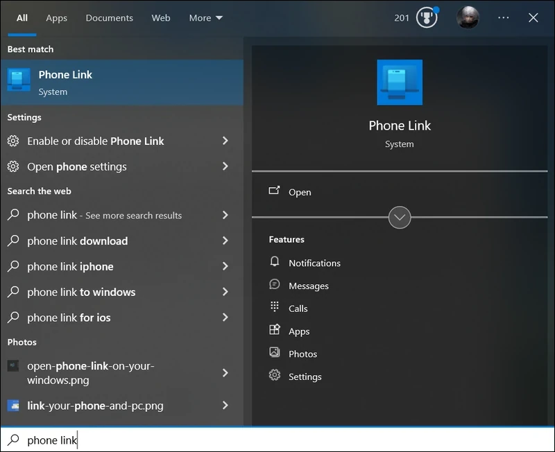 步骤6然后打开电脑,找到电话链接Windows 上的应用程序(通常是预安装的)。