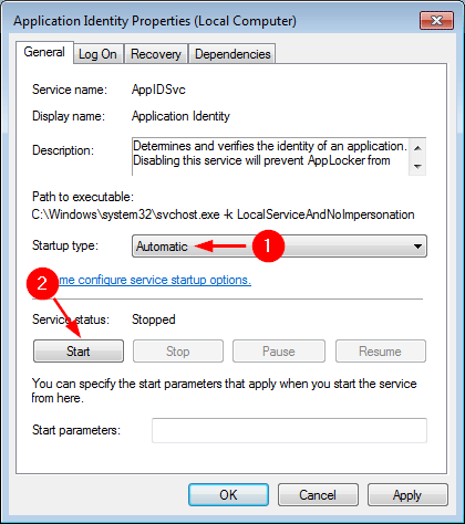 要使 AppLocker 恢复工作,请按照以下步骤启动应用程序身份服务: