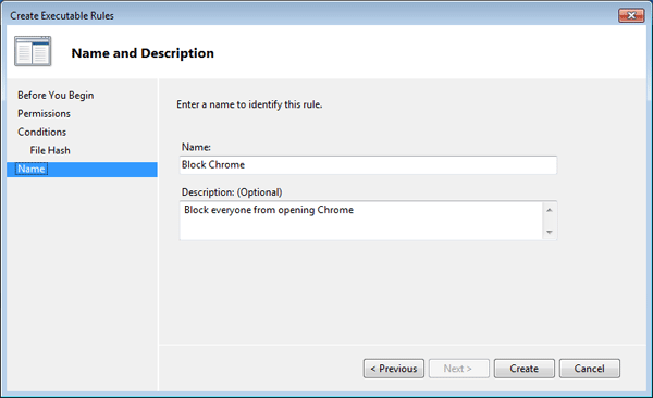 这里我们要选择文件哈希值因为即使程序被重命名或移动,AppLocker 仍然可以识别该程序。