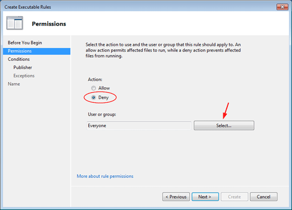 - 点击下一个绕过“开始之前”屏幕。在权限页面上,选择否定(点击允许如果您想限制其他用户只能访问哪些程序)。