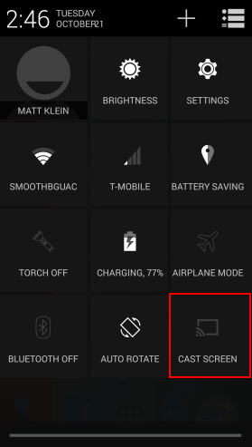 提示:如果您在“投射屏幕”下启用了无线显示,则还可以从“快速设置”屏幕进行投射。要做的事情:从屏幕顶部向下滑动以打开“快速设置”,然后单击“投射屏幕”按钮。