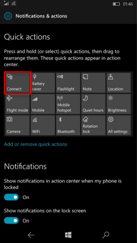 从屏幕顶部向下滑动以打开操作中心,然后单击“连接“ 按钮。