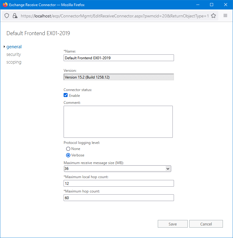 - 如果默认接收连接器不存在,它将创建一个具有正确设置的新默认接收连接器。