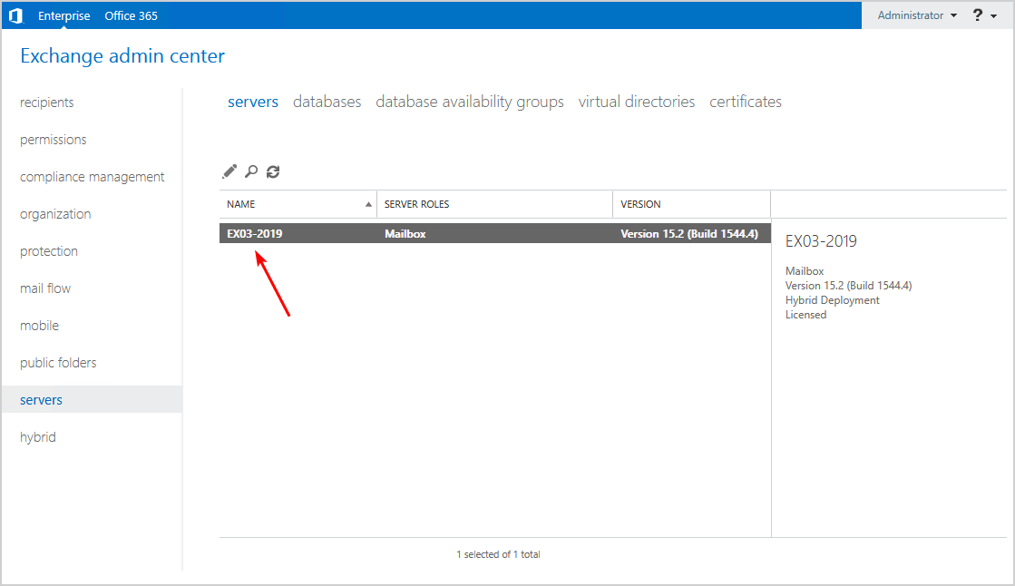 在此示例中,Exchange Server EX03-2019 是组织中的最后一台服务器。