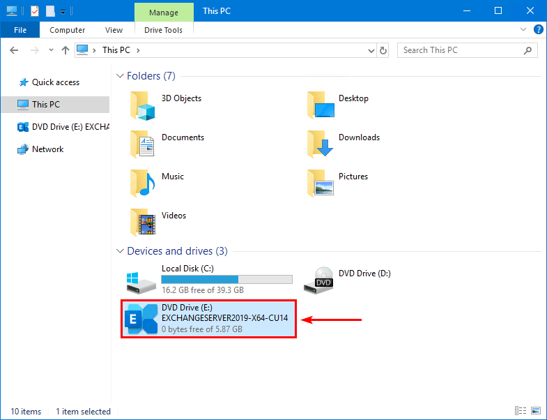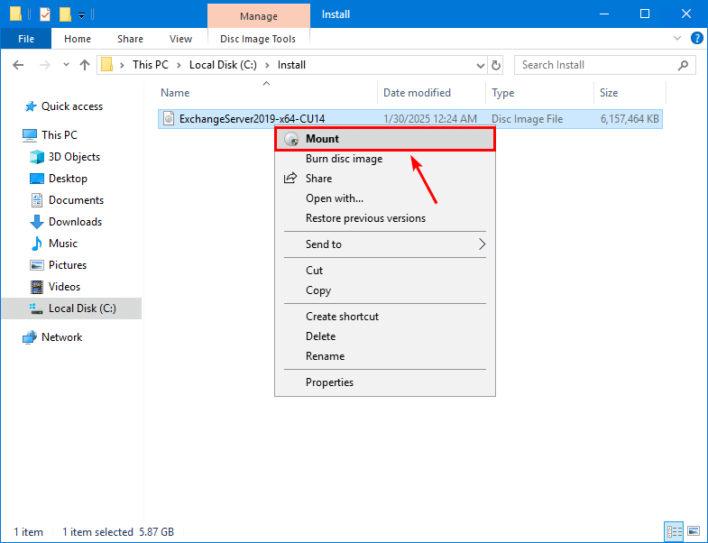 - 在加入域的计算机或服务器上安装 Exchange Server ISO。