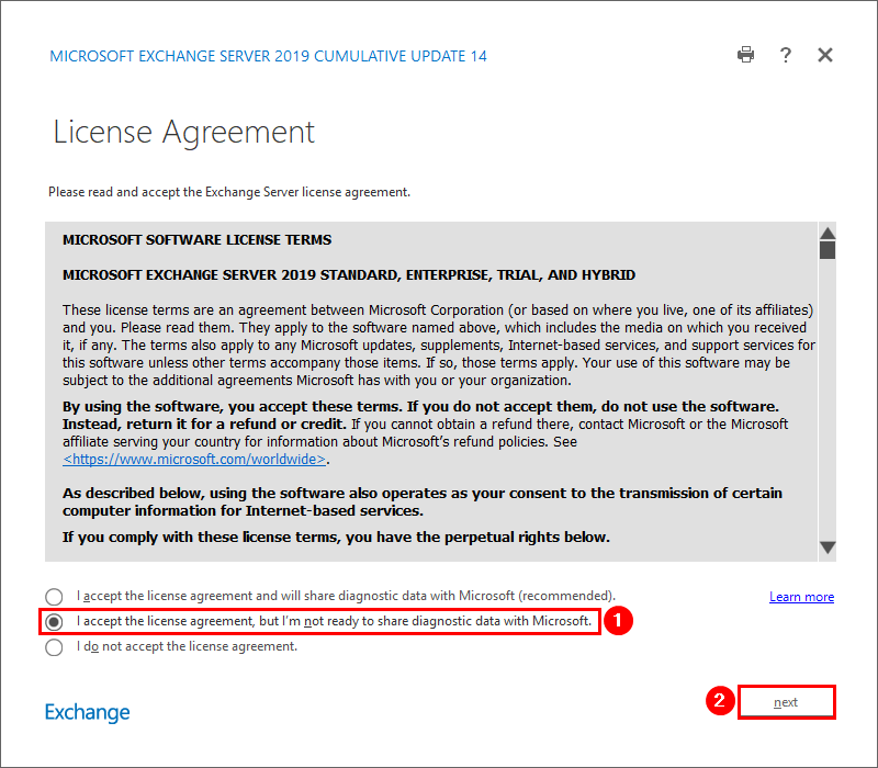 E:Setup.exe /m:Upgrade /IAcceptExchangeServerLicenseTerms_DiagnosticDataOFF