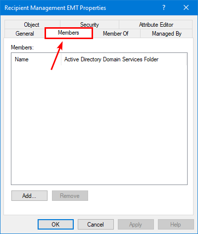 笔记:该脚本创建一个名为“收件人管理 EMT”的安全组。该组的成员具有收件人管理权限。所有没有域管理员权限、需要执行收件人管理的管理员都应添加到此安全组。