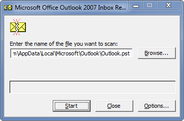 - 运行scanpst.exe工具。点击浏览选择您的PST文件并单击开始。