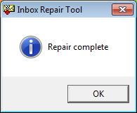 - 完成后,Scanpst.exe实用程序将显示“修复完整”消息。点击好的。