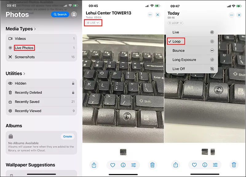 当然可以。打开照片应用程序,然后转到专辑部分。点击媒体类型部分中的实时照片,然后选择在图片上打开。切换居住”在左上角的选项“循环”。