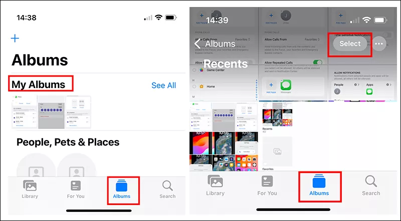 步骤2:导航到专辑或者图书馆选项卡以在iPhone上找到照片幻灯片的图像。