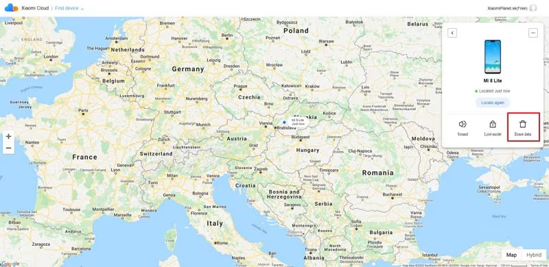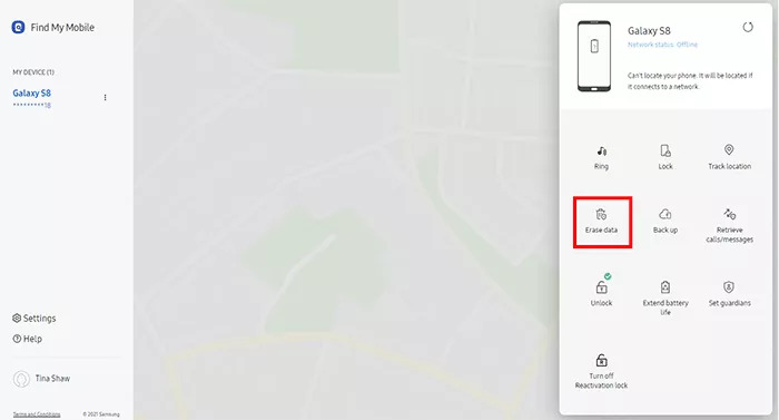 步骤2:点击查找设备,选择您的手机,然后选择删除数据。