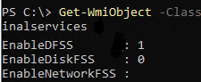 Get-WmiObject -Class win32_terminalservicesetting -Namespace rootcimv2terminalservices | FL EnableDFSS,EnableDiskFSS,EnableNetworkFSS