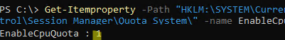 Get-Itemproperty -Path "HKLM:SYSTEMCurrentControlSetControlSession ManagerQuota System" -name EnableCpuQuota