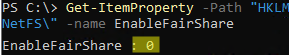 Get-ItemProperty -Path "HKLM:SYSTEMCurrentControlSetServicesTSFairShareNetFS" -name EnableFairShare