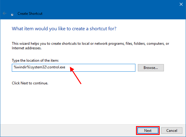 步骤 2:然后拖放创建控制面板快捷方式从您的桌面进入它。