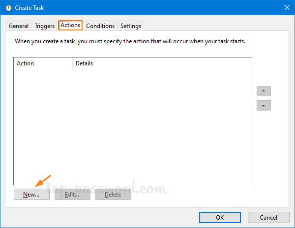 - 选择 ”启动一个程序”,单击“操作”下拉列表。输入电源外壳程序程序/脚本字段中的命令。在“添加参数”字段中,键入以下内容,然后单击好的。