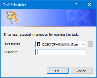 - 出现提示时输入当前 Windows 帐户的密码,然后单击好的。